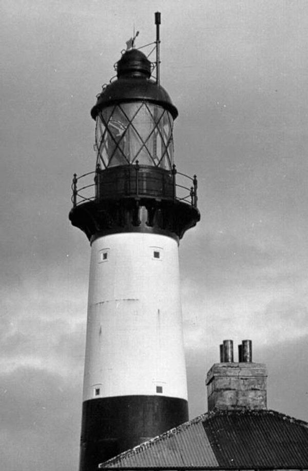 The re-built light was finally illuminated again in June 1907. The original system had been replaced by a dioptric (refracting) 3rd order apparatus, lit by paraffin lamps. Mounted on a stand which revolved by clockwork, it showed a flashing light instead of a fixed one and was visible for 16 miles in clear weather. The tower was painted black with a broad white band.