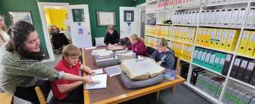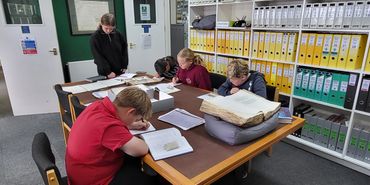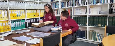 At the Archives, the team had carefully laid out a wealth of research materials for the children to examine and take notes from. Chloe read aloud a telex message sent by Shackleton, adding an extra layer of historical significance to their research. The students were also able to use the computers and photocopier to aid their work. The Archives contain a treasure trove of newspaper articles, photographs, and government records related to Shackleton’s expedition and his visit to the Falkland Islands.