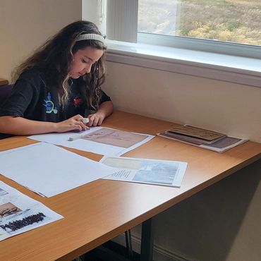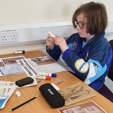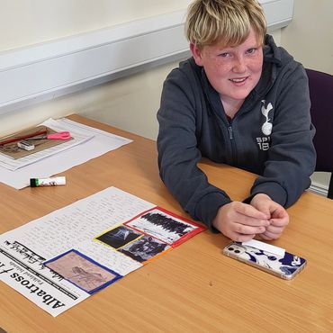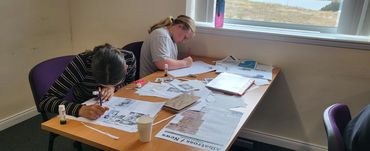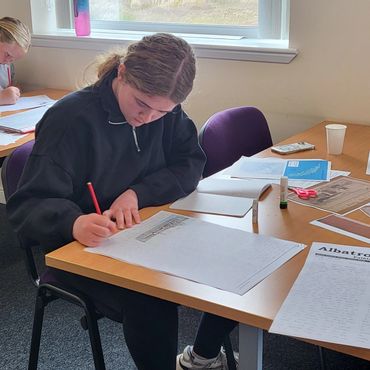 In the afternoon, each participant was given an A3-sized blank 'Albatross Newspaper' template, ready to create their very own article. They had access to photocopied images and research materials, but their challenge was to tell the story of Shackleton’s expedition using their own notes and understanding from the morning’s sessions. It was no small task, especially within the limited timeframe, but they all got stuck in—and soon, silence fell across the classroom as they focused on their work.