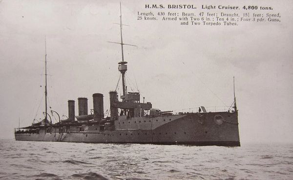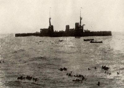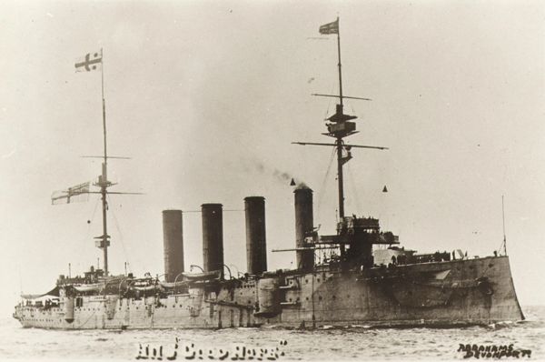 Craddock’s out-dated cruisers Good Hope and Monmouth, light cruisers Otranto and Glasgow and the aging pre-dreadnaught Canopus (in reserve), were no match for the modern German flotilla - the Good Hope and Monmouth were lost with all hands and the others retreated to the Falkland Islands.