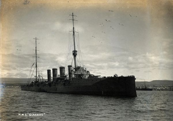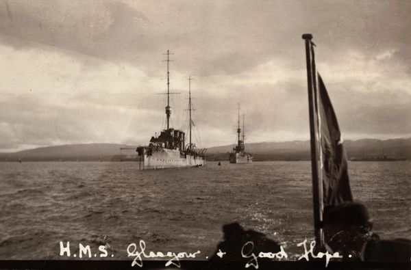 On 1st November 1914, the British Squadron, led by Admiral Sir Christopher Cradock, engaged von Spee at Coronel, off the Chilean coast.